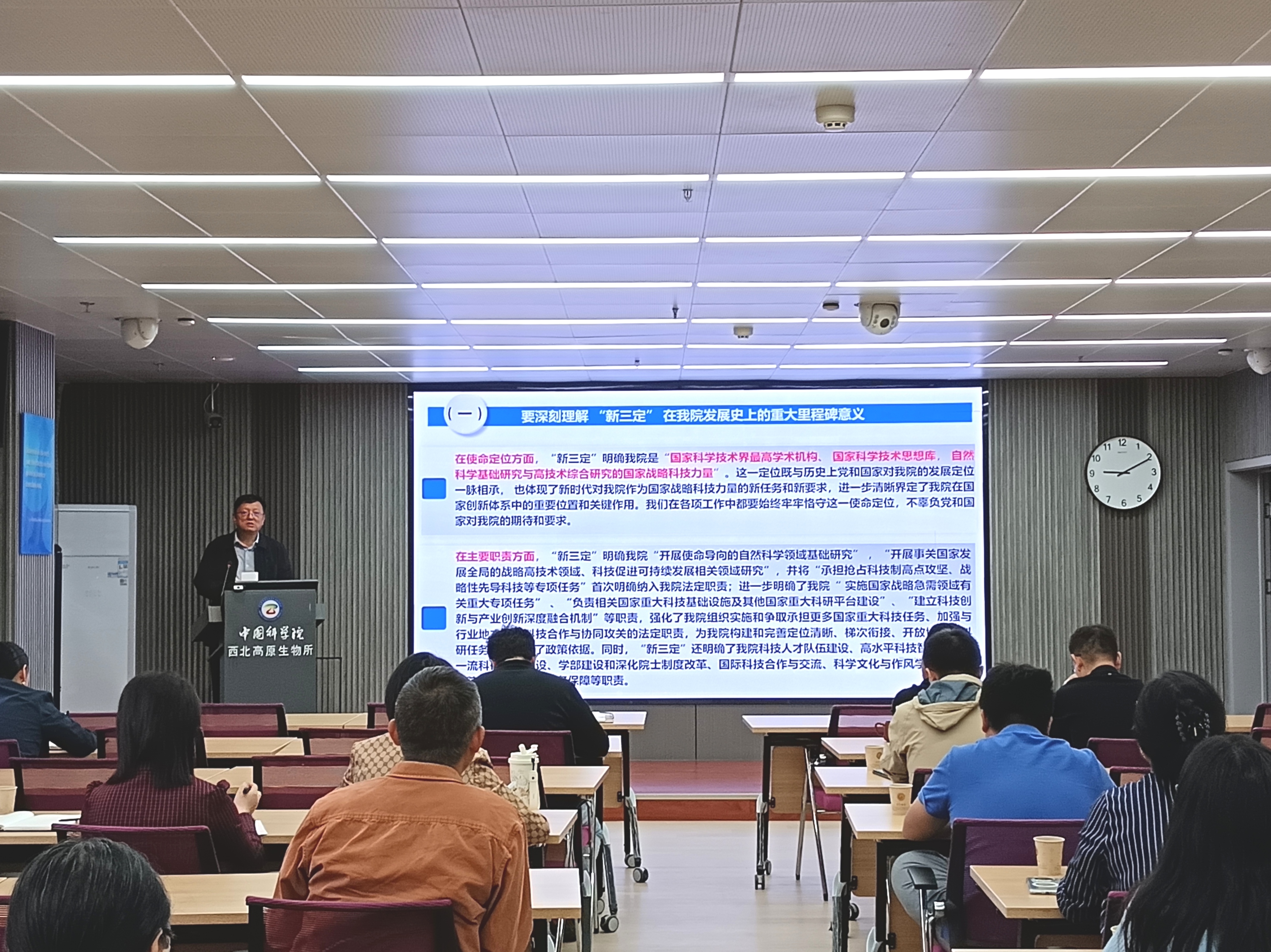 陳世龍傳達了院黨組夏季擴大會(huì )議精神,重點(diǎn)圍繞貫徹落實(shí)黨中央賦予中國科學(xué)院的新使命新要求、組織實(shí)施國家重大科技任務(wù)、高質(zhì)量做好“十五五”規劃編制工作、進(jìn)一步深化科研院所改革以及鞏固深化深入貫徹中央八項規定精神學(xué)習教育成果等方面進(jìn)行了深入講解。結合西北高原所科研工作實(shí)際,將講話(huà)精神與研究所重點(diǎn)工作相結合,引導參會(huì )人員將思想和行動(dòng)統一到院黨組決策部署上來(lái)。