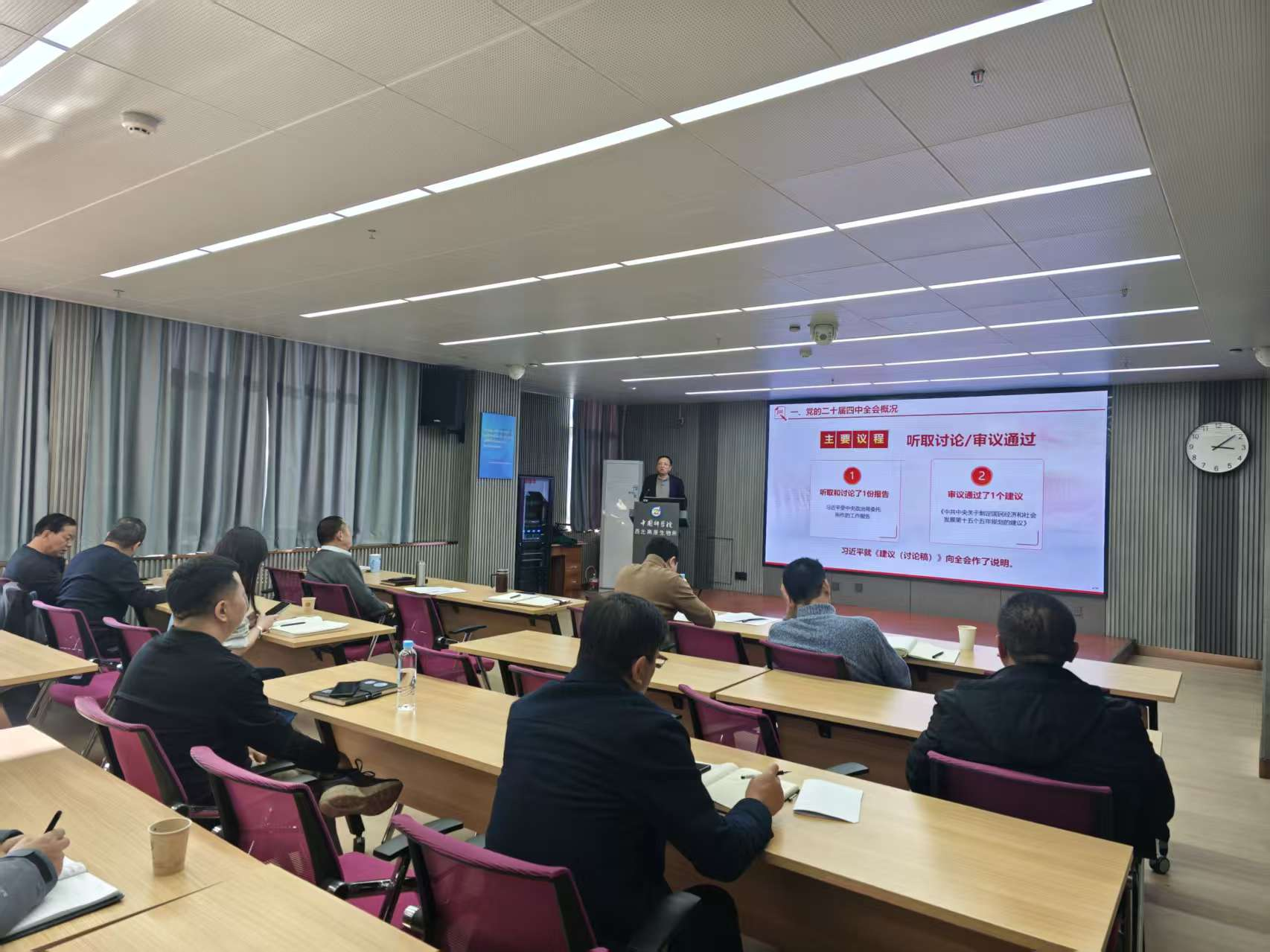 11月27日下午,中國科學院西北高原生物研究所召開黨委理論學習中心組第六次(擴大)會議,會議主題是傳達學習習近平總書記在黨的二十屆四中全會上的重要講話和全會精神,研究學習宣傳和貫徹落實的思路舉措等。會議由所長、黨委書記陳世龍主持,黨委理論學習中心組成員參加會議。