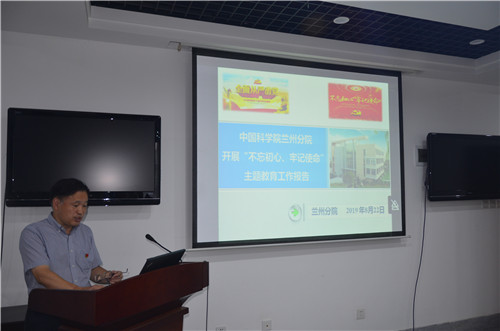 張懷剛首先傳達了《中國科學(xué)院“不忘初心、牢記使命”主題教育及專(zhuān)項整治情況通報》主要內容;以《蘭州分院開(kāi)展“不忘初心、牢記使命”主題教育工作報告》為題,通報了蘭州分院機關(guān)主題教育推進(jìn)情況和下步工作計劃;對蘭州分院“不忘初心、牢記使命”主題教育專(zhuān)題民主生活會(huì )會(huì )前準備、會(huì )議召開(kāi)情況、會(huì )議內容及效果等也進(jìn)行了通報。