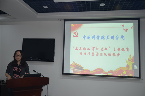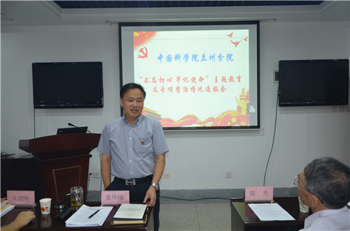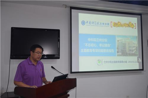 蘭州分院副院長(cháng)、分黨組成員吳建剛作了《蘭州分院“不忘初心、牢記使命”主題教育專(zhuān)項整治情況報告》,通報了對所征集發(fā)現專(zhuān)項問(wèn)題的整改思路、整改措施、整改進(jìn)展等。