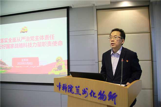 5月8日上午,中國科學(xué)院蘭州化學(xué)物理研究所召開(kāi)黨委理論學(xué)習中心組擴大會(huì )議,圍繞“加強黨的政治建設” 開(kāi)展專(zhuān)題學(xué)習研討。會(huì )議由黨委書(shū)記、所長(cháng)王齊華主持。所黨委委員,管理部門(mén)黨支部書(shū)記及負責人參加了會(huì )議。