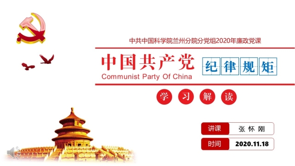 11月18日,中共中國科學(xué)院蘭州分院分黨組舉行2020年黨風(fēng)廉政專(zhuān)題黨課。分黨組書(shū)記張懷剛以《中國共產(chǎn)黨的紀律和規矩》為題,再次組織干部職工對習近平總書(shū)記關(guān)于嚴明黨的紀律和規矩的重要論述進(jìn)行了系統學(xué)習,進(jìn)一步引導和幫助黨員干部深化理解習近平同志關(guān)于全面從嚴治黨的思想觀(guān)點(diǎn),筑牢廉潔自律意識,強化黨風(fēng)廉政建設責任制落實(shí)。