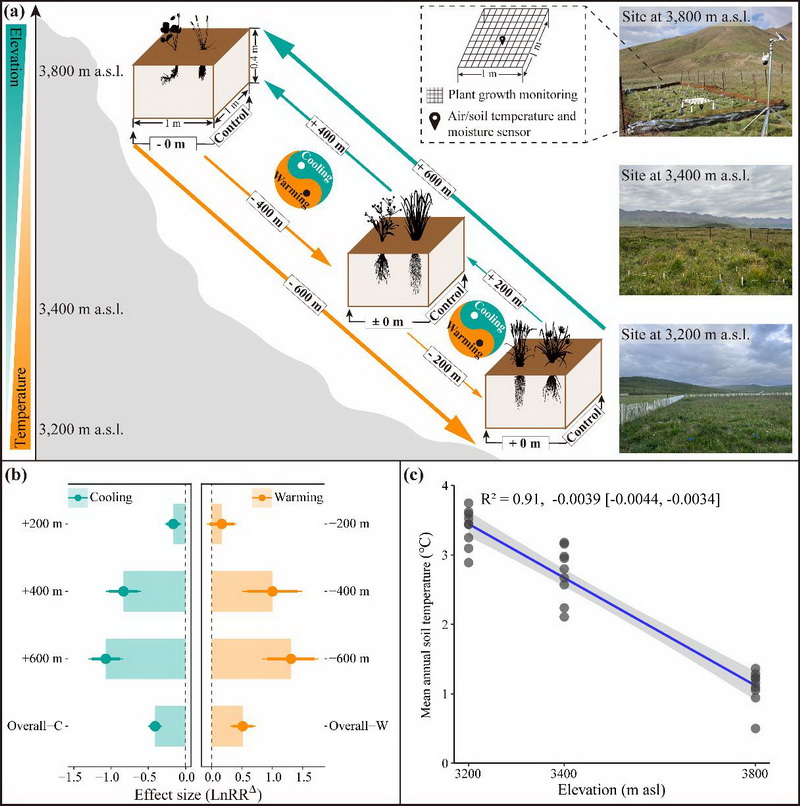 該研究成果于2025年7月15日以?Responses of subsoil organic carbon to climate warming and cooling is determined by microbial community rather than its molecular composition?為題發(fā)表在生態(tài)學(xué)頂級學(xué)術(shù)期刊?Ecology Letters(中國科學(xué)院1區TOP,五年IF=9.4)。西北高原所博士研究生李宇章為第一作者,張振華研究員為通訊作者。中國科學(xué)院青藏高原研究所汪詩(shī)平研究員、北京大學(xué)賀金生教授與朱彪教授、蘭州大學(xué)井新教授、青海大學(xué)趙新全教授、四川師范大學(xué)胡宜剛教授等也參與了研究。該研究得到了西部之光-重點(diǎn)實(shí)驗室專(zhuān)項?交叉團隊項目、國家自然科學(xué)基金面上項目和第二次青藏高原科學(xué)考察項目的資助。