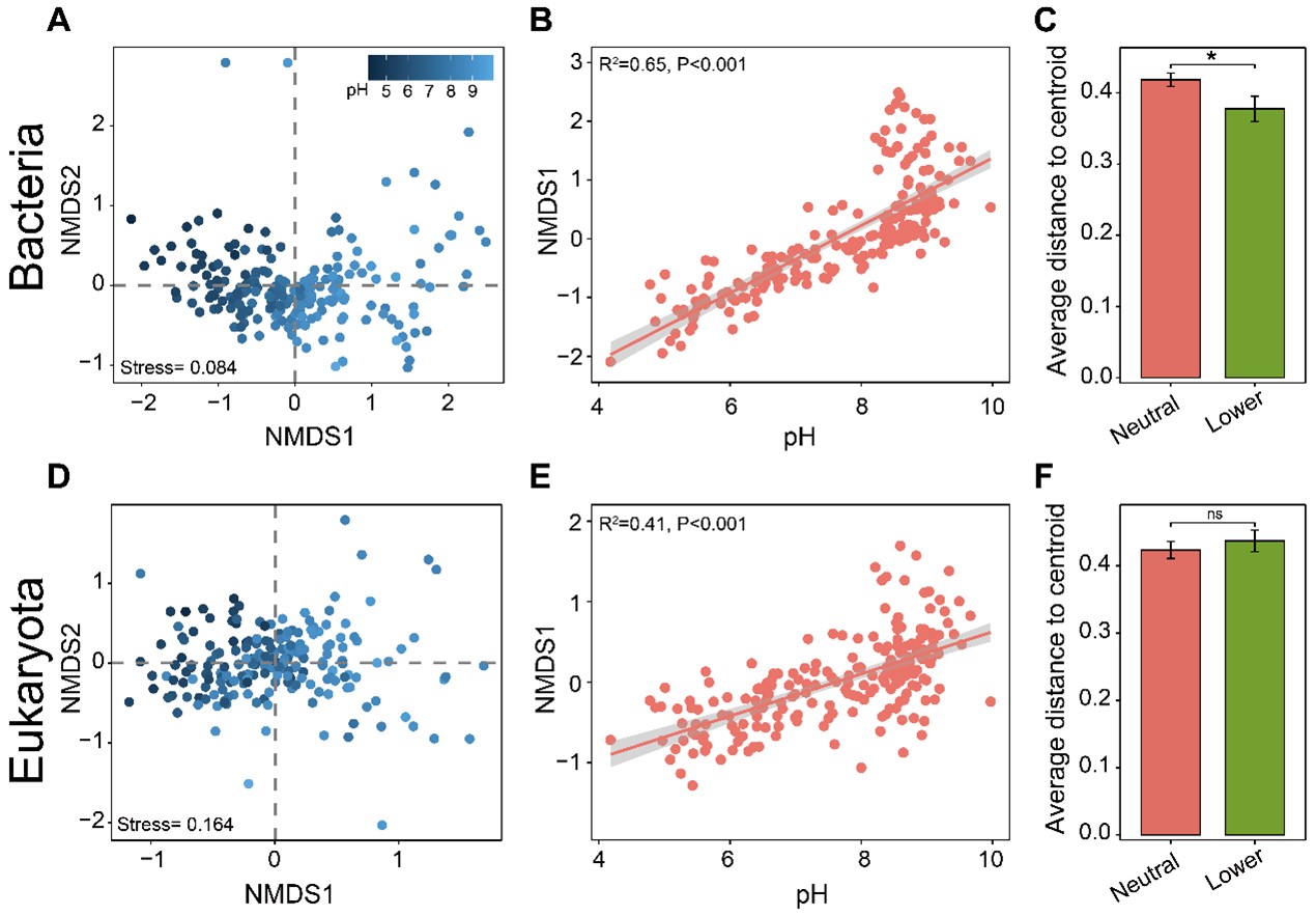 近日,中國科學(xué)院西北生態(tài)環(huán)境資源研究院李玉強研究員團隊受Global Change Biology期刊邀請發(fā)表研究成果,利用多元交叉驗證(NMDS+PLS-PM+PERMDISP)方法,系統揭示了土壤酸化過(guò)程中細菌和真核生物β-多樣性的解耦規律,及細菌和真核生物群落組成對土壤酸化的響應差異,為理解土壤生態(tài)系統穩定性提供了新視角。