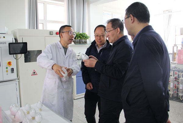 陳永祥一行參觀(guān)了科技成果展廳、鹽湖化學(xué)分析測試中心和實(shí)驗室,詳細了解了青海鹽湖所歷史沿革、科研平臺及人才隊伍建設情況,重點(diǎn)調研了鹽湖鋰資源分離提取及廢舊鋰電回收實(shí)驗平臺及研究進(jìn)展。