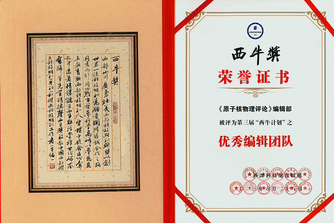 《原子核物理評論》再獲第三屆“西牛計劃”兩項殊榮