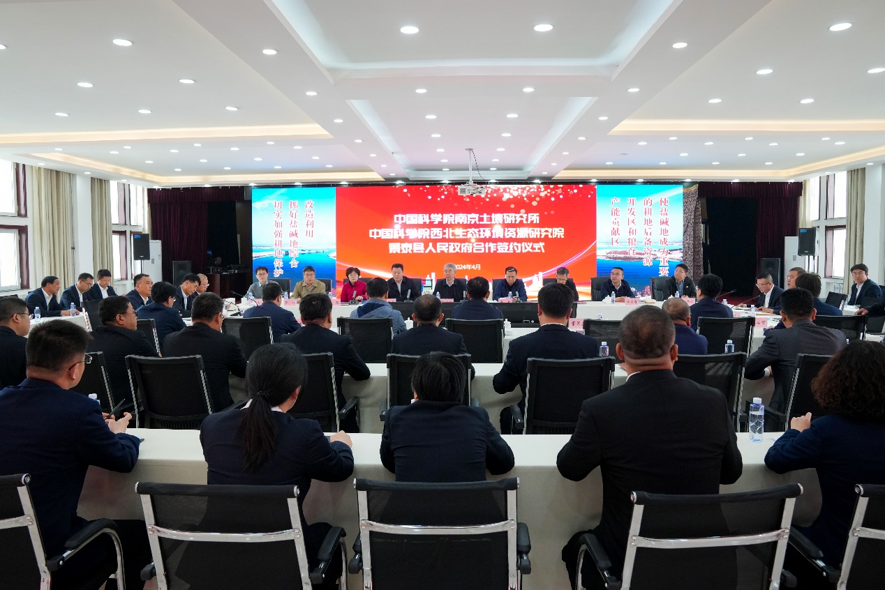 為全面貫徹落實(shí)習近平總書(shū)記關(guān)于切實(shí)加強耕地保護、抓好鹽堿地綜合治理利用的重要講話(huà)精神,4月28日,中國科學(xué)院西北生態(tài)環(huán)境資源研究院與中國科學(xué)院南京土壤研究所、景泰縣人民政府舉行了鹽堿地綜合利用三方合作框架協(xié)議簽署儀式,并召開(kāi)鹽堿地治理專(zhuān)家座談會(huì )。中國工程院院士、南京土壤研究所張佳寶研究員,中國工程院院士、西北研究院院長(cháng)馮起研究員,南京土壤所所長(cháng)沈仁芳研究員,白銀市委書(shū)記楊建武,景泰縣委書(shū)記薛丞忠、縣長(cháng)陳啟智,西北研究院黨委書(shū)記張長(cháng)春,甘肅省農業(yè)農村廳、省科技廳等相關(guān)領(lǐng)導參加簽約儀式。