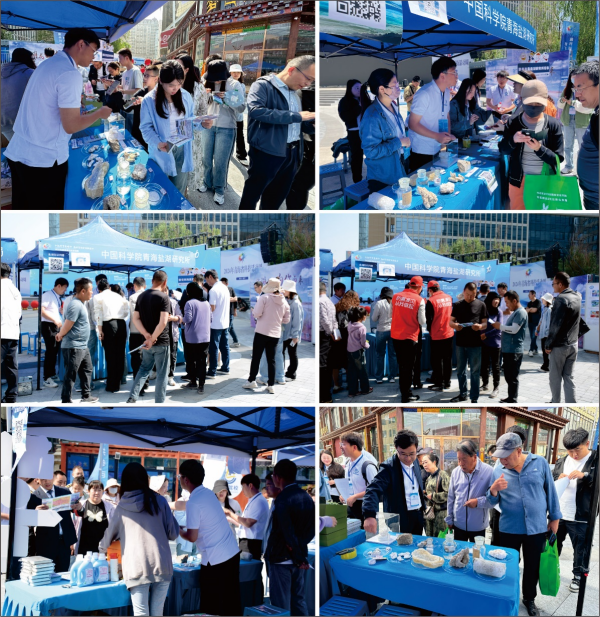 活動(dòng)現場(chǎng),28家單位聯(lián)動(dòng)開(kāi)展多種類(lèi)、多元化科普宣傳內容,科技感十足的機器人、航天器模型和多種科研儀器吸引著(zhù)眾多參展觀(guān)眾的目光。依托青海鹽湖所成立的青海省鹽湖地質(zhì)與環(huán)境科研科普基地,通過(guò)詳細策劃和充分動(dòng)員年輕科研骨干,精心準備了“青藏高原鹽湖演化、鹽湖成鹽成礦過(guò)程、微觀(guān)世界中的鹽湖、鹽湖資源高效利用、鹽湖旅游資源、鹽湖與人類(lèi)生活和最美鹽湖人”等七個(gè)宣傳板塊,全面展示了鹽湖科普知識。展臺前觀(guān)眾絡(luò )繹不絕,成為本次活動(dòng)人氣最旺的展臺之一。不同年齡段、不同行業(yè)的參觀(guān)群眾通過(guò)“看展板、聽(tīng)講解、摸標本”了解和學(xué)習鹽湖科普知識,并積極參與“鹽湖知識答題”環(huán)節。兩個(gè)小時(shí)的活動(dòng)中共有154人參與掃碼答題互動(dòng),觀(guān)眾們不僅獲得了小獎品,也在參觀(guān)答題過(guò)程中學(xué)習了鹽湖知識,感受了鹽湖的神奇與美麗。