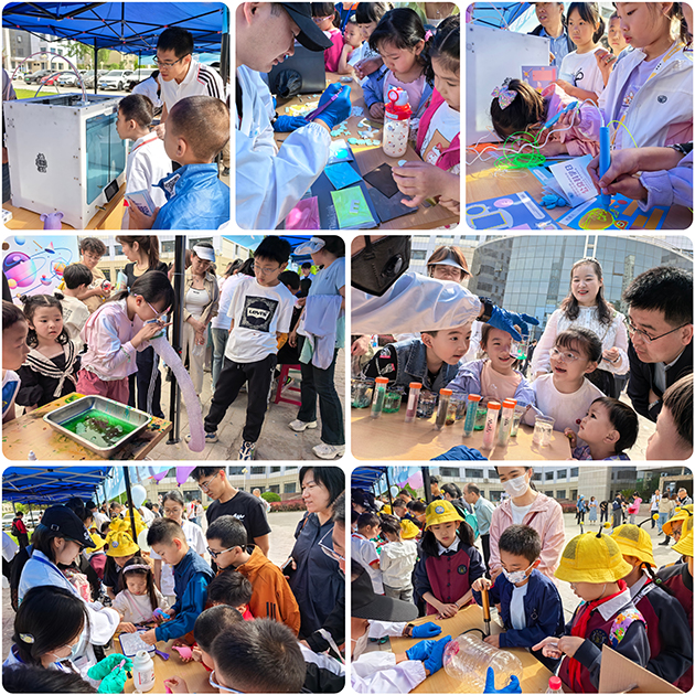 科學(xué)實(shí)驗嗨廣場(chǎng)精心設置了“憤怒的小河豚”“掌心里的神奇火焰”“奇妙的3D打印”“點(diǎn)水成膠”“神奇的摩擦發(fā)光”“水中花園”“‘瓶’空造云”“趣味泡泡龍”“多彩多樣”等科學(xué)互動(dòng)小實(shí)驗和化學(xué)元素對對碰、薯光超腦戰互動(dòng)游戲。讓學(xué)生在“像科學(xué)家一樣思考”的過(guò)程中,理解科學(xué)并非一成不變的真理,從而真正愛(ài)上“探索未知”的樂(lè )趣。