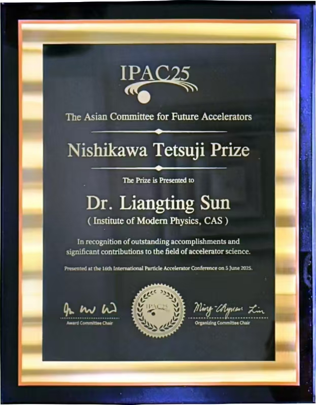 近代物理所孫良亭研究員榮獲2025年度國際粒子加速器獎“西川哲治獎”(Nishikawa Tetsuji Prize)