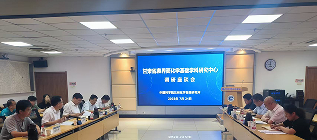 7月24日上午,甘肅省科技廳黨組成員、副廳長(cháng)馬騰宇一行來(lái)中國科學(xué)院蘭州化學(xué)物理研究所調研甘肅省表界面化學(xué)基礎學(xué)科研究中心(以下簡(jiǎn)稱(chēng)“中心”)建設情況。中國科學(xué)院院士、蘭州化物所學(xué)術(shù)委員會(huì )主任委員劉維民,黨委書(shū)記王齊華,副所長(cháng)石峰,中心學(xué)科帶頭人及發(fā)展規劃處相關(guān)人員參加座談。