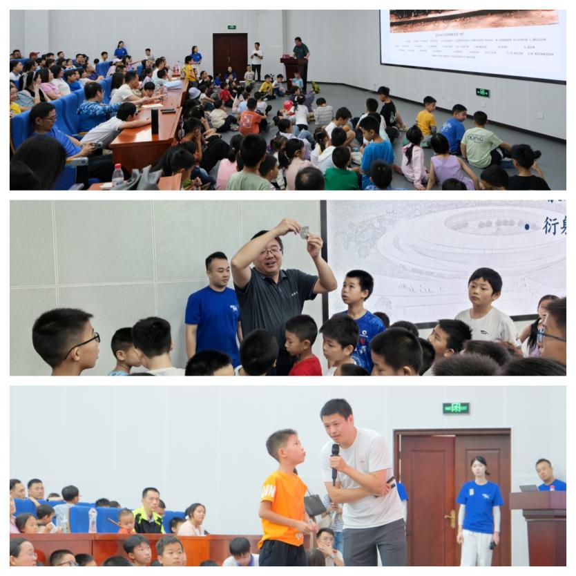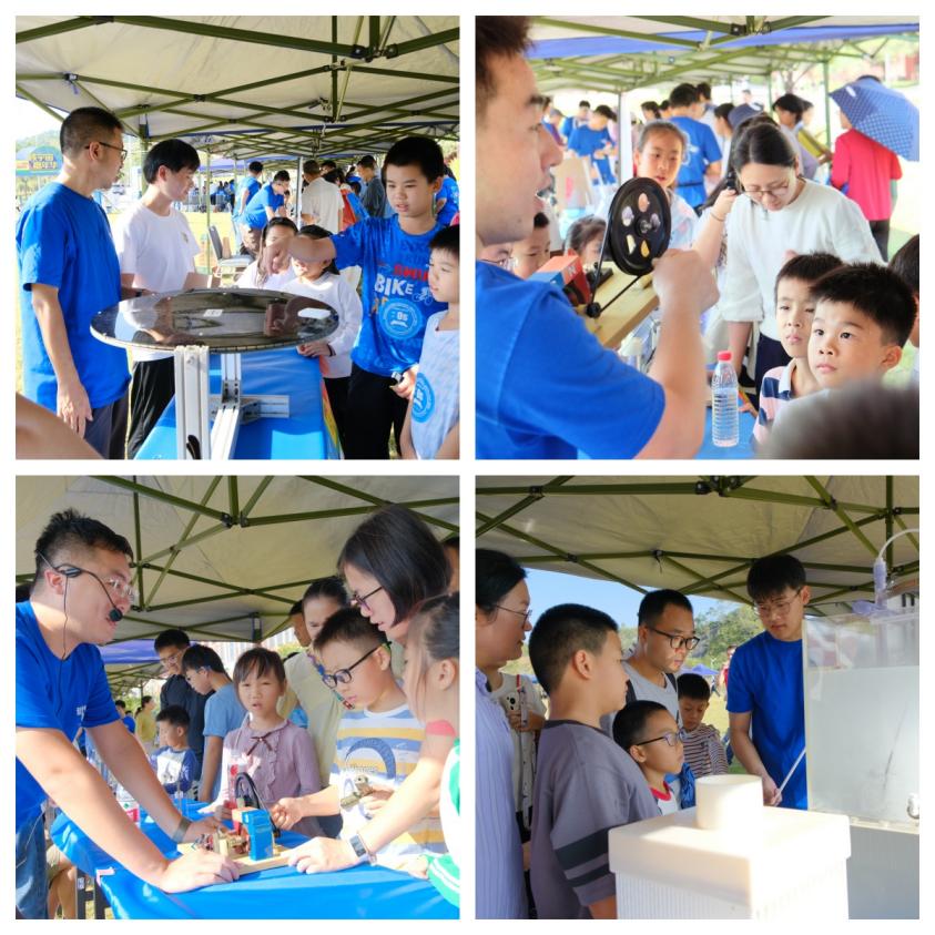 活動(dòng)形式豐富多樣,科普展廳設有強流重離子加速器裝置(HIAF)和加速器驅動(dòng)嬗變研究裝置(CiADS)的沙盤(pán)模型,科研人員為現場(chǎng)公眾詳細講解這些國家重大科技基礎設施的進(jìn)展。在創(chuàng )新展區,展示了超緊湊旋轉束重離子治療系統和中國首臺碳離子治療系統等模型,四極磁鐵、超導腔等加速器實(shí)物設備也吸引了不少關(guān)注??破請蟾姝h(huán)節中,中國科學(xué)技術(shù)大學(xué)的謝治助理研究員作了題為《追光逐日,迎接未來(lái)》的報告,介紹同步輻射領(lǐng)域的前沿知識;中國科學(xué)院近代物理研究所的藍江山副研究員則以《探索微觀(guān)物質(zhì)世界的奧秘》為題,帶領(lǐng)聽(tīng)眾探索粒子物理的奧秘,現場(chǎng)引發(fā)了熱烈提問(wèn)?;?dòng)體驗是本次活動(dòng)的亮點(diǎn)。在實(shí)驗秀中,展示了高溫超導磁懸浮和核孔膜超黑材料等實(shí)驗演示;在“粒子特工訓練基地”,孩子們通過(guò)游戲模擬重離子在加速器中的運動(dòng),深入理解其工作原理,特邀惠州學(xué)院附屬學(xué)校學(xué)生擔任該項活動(dòng)特別講解員,通過(guò)。此外,創(chuàng )工坊里,孩子們在老師的指導下參與科學(xué)制作,激發(fā)了他們對科學(xué)的熱情。